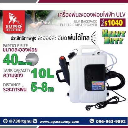 พ่นได้ละเอียดกว่า ขนาดไมครอนที่เล็กกว่าถึง 40 ไมครอน มีระยะการพ่นละอองเคมีได้ไกลถึง 8 เมตร ขนาดถัง (Tank Capacity) : 10L แรงดันไฟฟ้า (Rated Voltage) : 220V ความถี่ไฟฟ้า (Rated Frequency) : 50Hz กำลังไฟฟ้า (Power) : 1400W