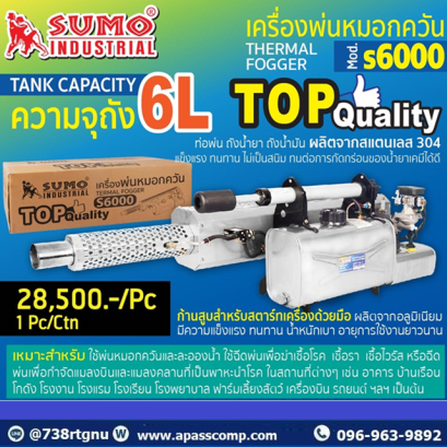 เชื้อไวรัส เชื้อ COVID-19 เครื่องพ่นยุง เครื่องพ่นยาฆ่าแมลง ใช้ฉีดพ่นเพื่อฆ่าเชื้อโรค 17500W (23.5HP) ความจุถังน้ำยา 6L ขนาดถังน้ำมัน 1.2L ขนาดของหมอกควัน 20 Minrons ขนาดของละอองฝอย 50 microns